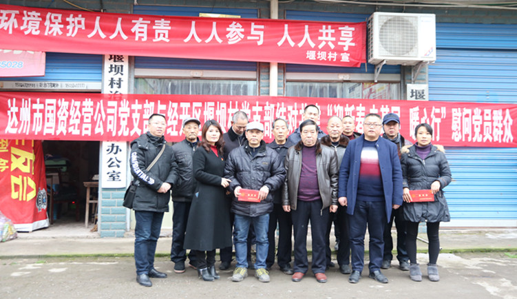 2月2日,達州市國資公司黨員干部來到城鄉(xiāng)結(jié)對共建黨支部經(jīng)開區(qū)堰壩村,開展“迎新春走基層.暖心行”慰問活動,對建檔立卡貧困戶、低保戶、困難黨員共計15人進行了慰問。