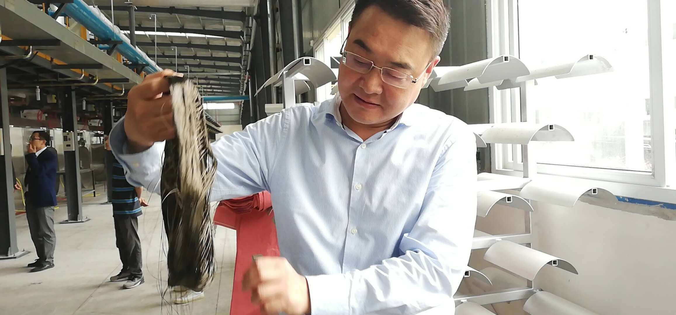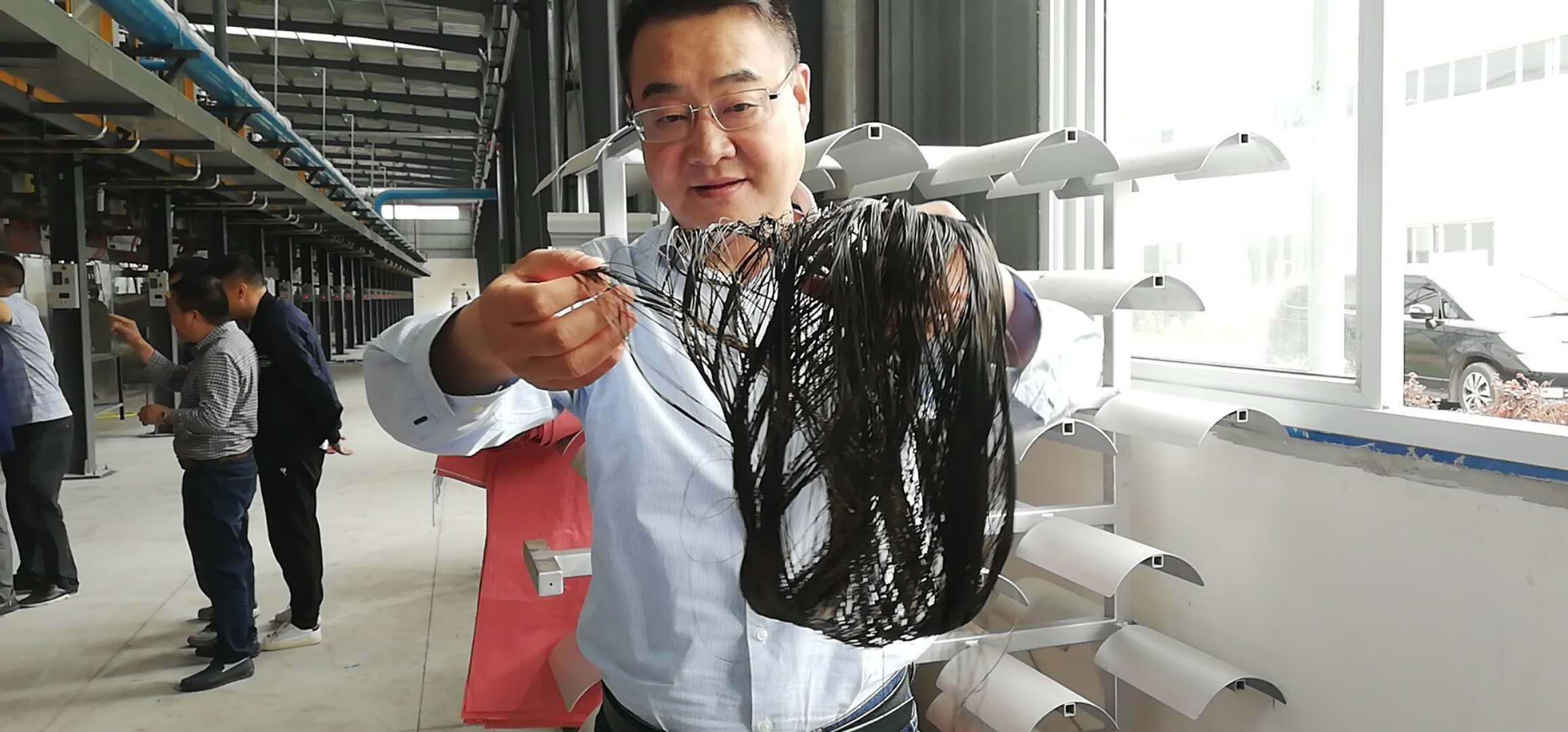 在現(xiàn)場我們看到,出料口溢出的陣陣高溫仿佛一道訊號,在工人們的歡呼聲中,比頭發(fā)絲還細的玄武巖纖維絲從出料口緩緩墜下,通過機器的帶動纏繞在繞線柱上,達州首批玄武巖纖維原絲出產(chǎn)了。剛出爐的玄武巖纖維原絲呈炭黑色,在空氣中稍作冷卻即迅速淡化,每根原絲厚度僅為17微米,比頭發(fā)絲還要細。